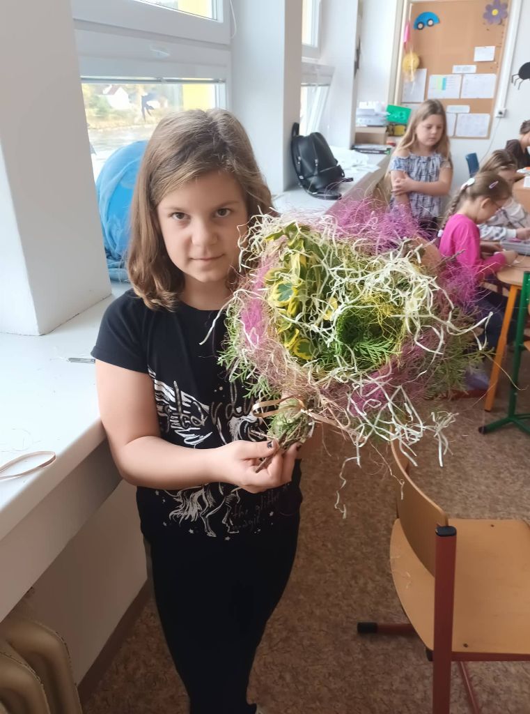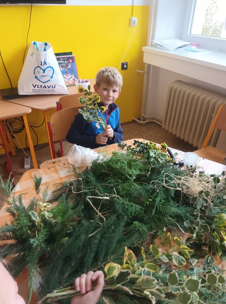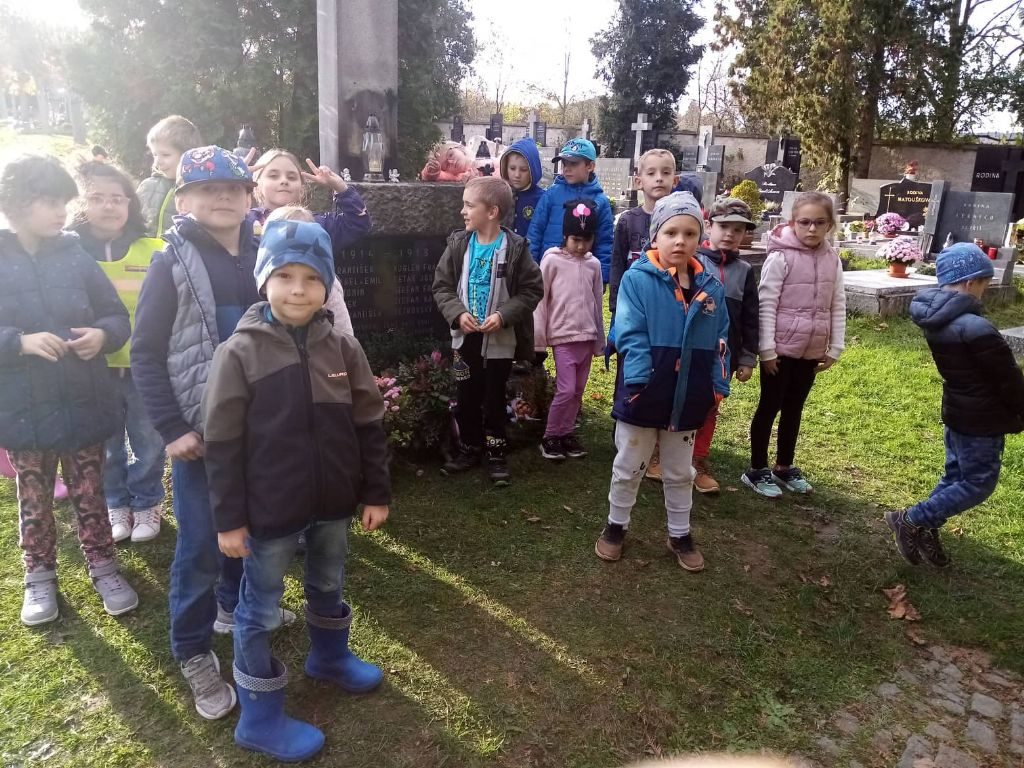 Ve středu 2. listopadu si děti v jednotlivých odděleních školní družiny připomněly zvyky a tradice spojené se svátkem „Dušičky.“ „Dušičky“ je zlidovělý název, oficiální název tohoto svátku je Památka zesnulých. V tento den můžeme vidět více lidí na hřbitovech, kdy přijíždějí zavzpomínat na ty, kteří už tento svět opustili. Vyrobili jsme si květinové vazby, svícny a odpoledne jsme navštívili místní hřbitov. Účelem návštěvy bylo dětem ukázat, jak jsou v tento den hroby ozdobené, a na ty opuštěné jsme položili vyrobené květinové vazby a zapálili svícny. Michaela Prášková