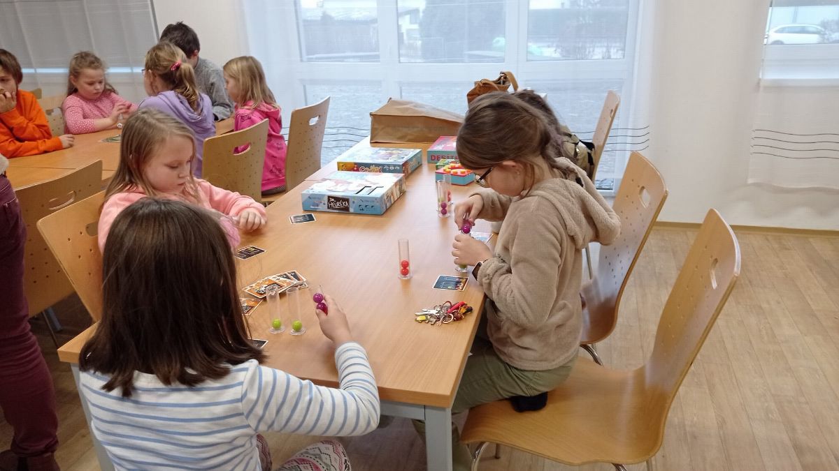 Ve středu 17. ledna jsme s dětmi ze školní družiny navštívili místní komunitní centrum, kde jsme si mohli vyzkoušet nejnovější edukativní deskové hry. Moc děkujeme paní Ivetě Šindelářové a Veronice Liotard za krásně připravený program .