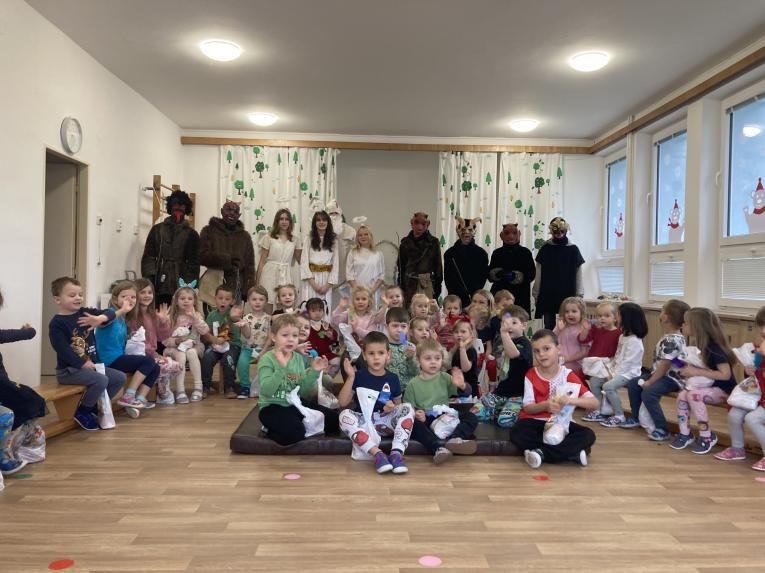 Žáci ze základní školy přišli děti do MŠ pochválit a rozdali jim mikulášskou nadílku.