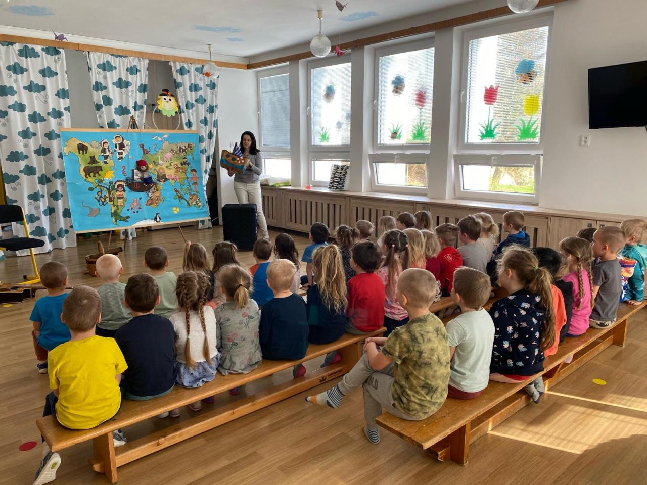 Dnes nás navštívilo Divadýlko s hudebním vystoupením ,,Námořník Bořík “. Kromě dětí z mateřské školy se zúčastnily i děti z přípravné třídy. Dětem se představení moc líbilo. Byly i zapojení do vystoupení. Mají hezký zážitek.