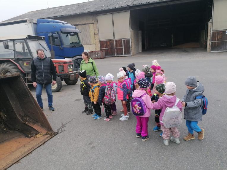 Třída starších dětí z MŠ se vydala na exkurzi do Krásné Hory do zemědělského družstva. Kde si děti prohlédly zemědělské stroje a telátka.