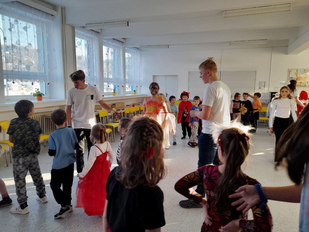 V úterý 5. 12. 2023 se uskutečnilo v naší škole disco. Vše připravili žáci z 9. a 8. třídy. Děti měly krásné kostýmy. Samozřejmě hrála hudba a všichni tančili. Konaly se různé soutěže. Za výhru byla sladká odměna. Všechny to moc bavilo a moc děkujeme.
