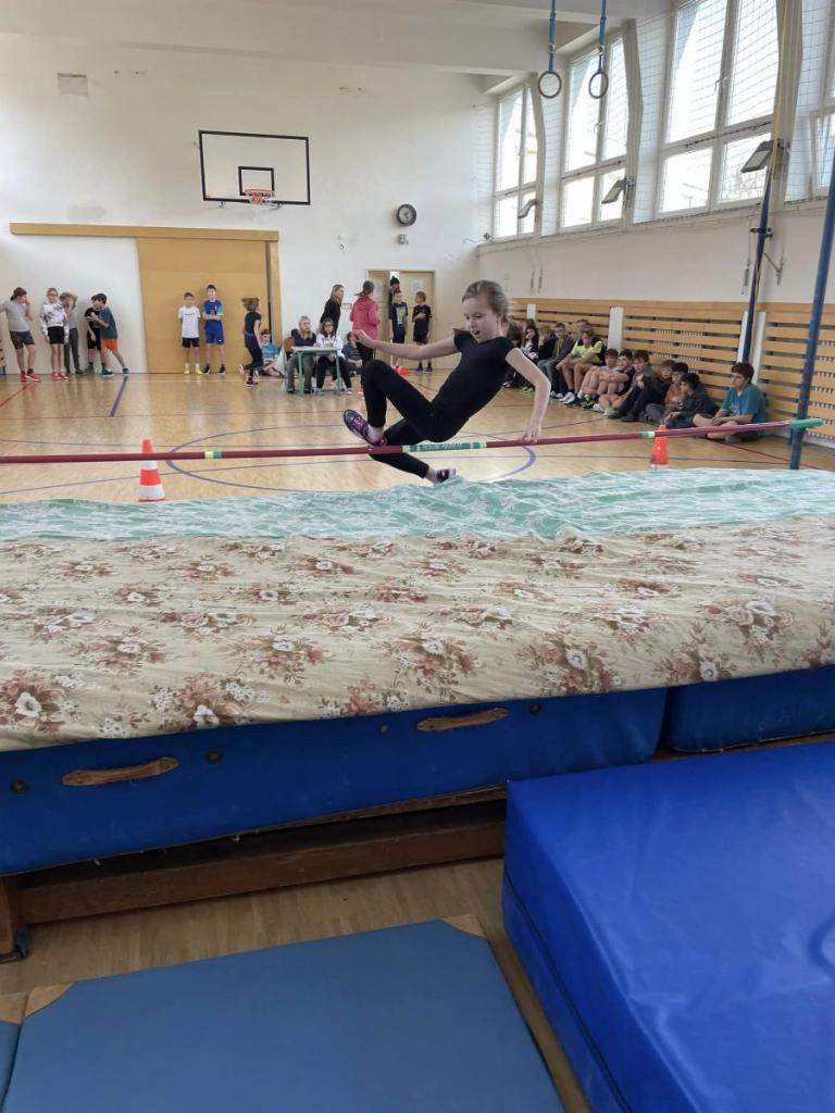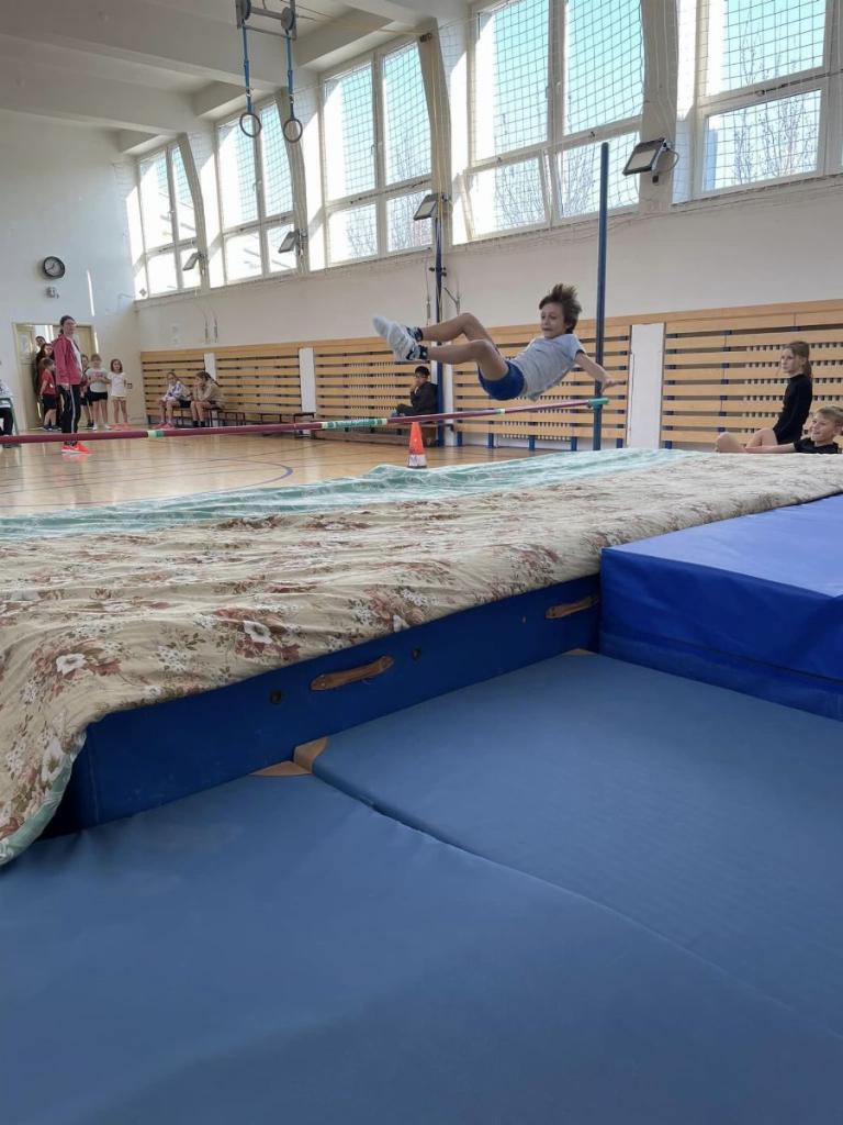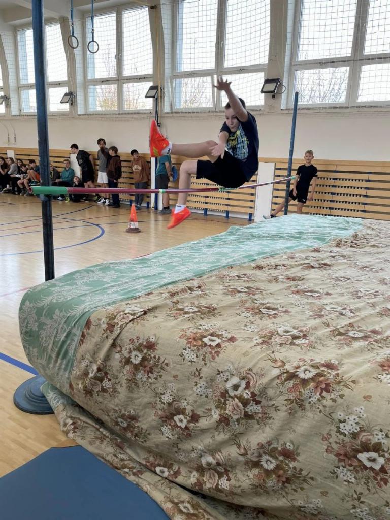 V úterý 9. 1. proběhlo školní kolo soutěže ve skoku vysokém v kategoriích 2. – 3. třída, 4. – 5. třída a 6. – 9. třída. Sportovci předvedli parádní výkony a byla radost sledovat jejich nadšení při úspěšných pokusech. A při těch méně povedených se projevila soudržnost ostatních a mohli jsme slyšet pořádné fandění. Děkujeme také našim zapisovatelkám.