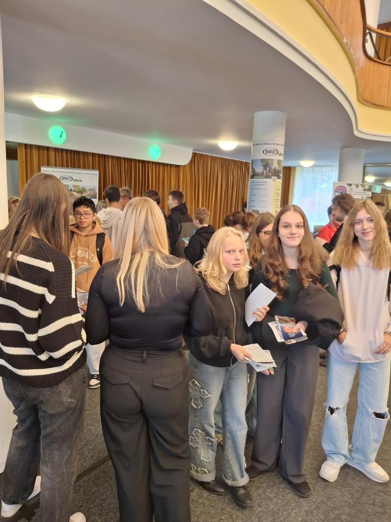 Naši deváťáci a osmáci se ve středu 24. září v Kulturním domě Příbram zúčastnili tradičního Veletrhu středních škol. V Estrádním sále se tak mohli setkat s žáky a učiteli středních škol, kteří byli připraveni na zvídavé otázky návštěvníků. Veletrh nabídl pestrou přehlídku oborů, směrů i příležitostí, od gymnázií přes odborná učiliště až po technické, zdravotnické či gastronomické školy. Žáci měli možnost mluvit, ptát se, porovnávat a přitom hledat odpověď na otázku, kam po devítce.